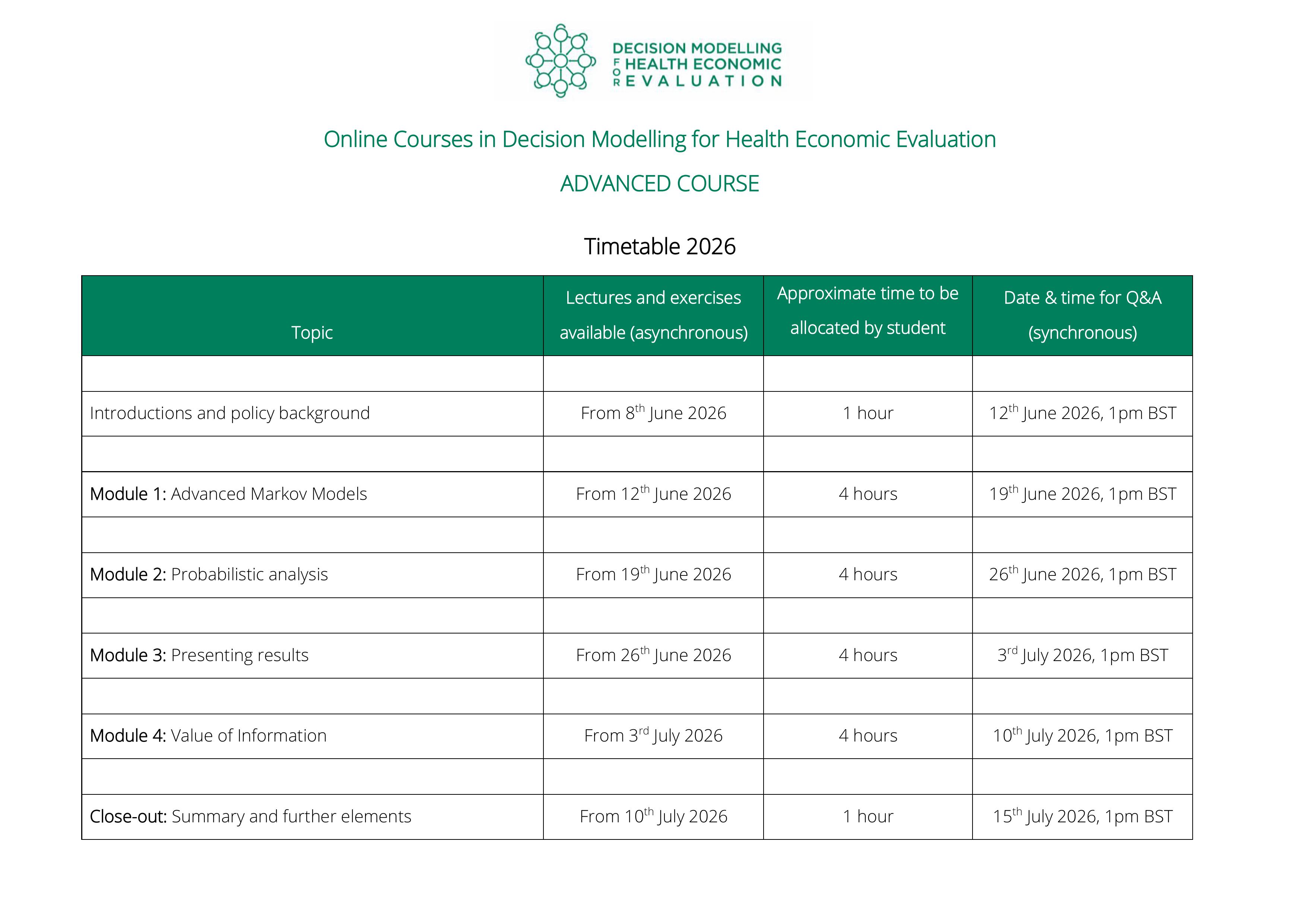 One ‘live’ question and answer session for each module with module leads